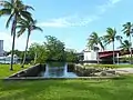 Lawrence created a lushly landscaped garden of royal palms with a guest house and a boat slip, and grew grapefruit on much of the remainder of his land. The royal palms remain, as do the boat slip, the steps, columns, and foundation of the guest house, and a water pump Lawrence used to irrigate the tropical plants and the grapefruit groves nearby.