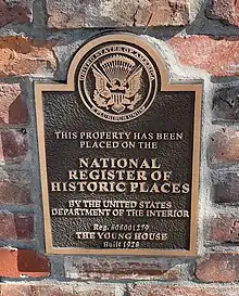 The Earl & Virginia Young House achieved Campbell Historic Landmark status in 1981 when the City of Campbell awarded the Young-Sartorette memorial plaque, officially recognizing it as a Campbell Historic landmark.[2][7] In 1999, the Earl & Virginia Young House secured recertification and was designated as the sixth entry on the Santa Clara County Heritage Inventory within the city of Campbell. The property has been placed on the National Register of Historic Places by the United States Department of the Interior on January 8, 2009.[2]