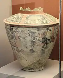 The ED I (2900–2750/2700 BC) is poorly known, relative to the sub-periods that followed it. In Lower Mesopotamia, it shared characteristics with the final stretches of the Uruk (c. 3300–3100 BC) and Jemdet Nasr (c. 3100–2900 BC) periods.[8] ED I is contemporary with the culture of the Scarlet Ware pottery typical of sites along the Diyala in Lower Mesopotamia, the Ninevite V culture in Upper Mesopotamia, and the Proto-Elamite culture in southwestern Iran.[9]