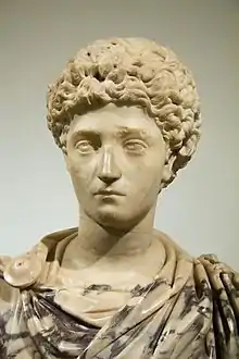 Lucilla, following prevailing aristocratic customs, probably did not spend much time with her son. Marcus was in the care of "nurses".[22] He credits his mother with teaching him "religious piety, simplicity in diet" and how to avoid "the ways of the rich".[23] In his letters, Marcus makes frequent and affectionate reference to her; he was grateful that, "although she was fated to die young, yet she spent her last years with me".[24]