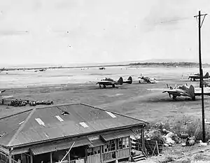 ![]() Northrop P-61 Black Widows and Republic P-47 Thunderbolts on East Field, June 24, 1945. | |