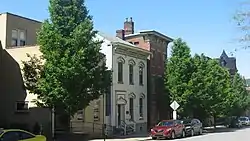 East Wheeling Historic District is a national historic district located at Wheeling, Ohio County, West Virginia. The district encompasses 300 contributing buildings and one contributing site, including the Monroe Street East Historic District. The district is primarily residential, developed in the late-19th and early-20th century. A number of popular architectural styles are represented including Greek Revival and Gothic Revival. Notable non-residential buildings include St. Joseph Cathedral (1926), former Hazel Atlas Company building (now West Virginia Northern Community College), Scottish Rite Temple designed by noted Wheeling architect Frederick F. Faris (1870-1927), Elks Building, and YMCA (1906), also designed by Faris. The contributing site is Elk Playground. Also located in the district are the separately listed L. S. Good House, Charles W. Russell House, and Cathedral Parish School.[2]
