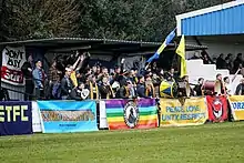In the present day Eastbourne Town's support now includes two main supporters groups Pier Pressure and the Beachy Head Ultras. Started in 2015, the groups follow the European ultras tradition and were formed by local fans disengaged with modern professional football.[45] The club's supporters groups have regularly backed anti-discrimination and anti-homophobia initiatives, amongst many other initiatives within the community.[46] Pier Pressure have strong links with the Whitehawk Ultra's and both groups regularly visit each other's games. There has also been similar links with the supporters of Dulwich Hamlet and Clapton Community.