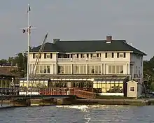Many yacht clubs and marinas line the bay on both sides, leading to a high level of recreational boating traffic. Traffic is particularly dense on weekends and Wednesday evenings in the summer, when the various clubs run sailboat races.[4] There is also a high volume of commercial traffic. The bay opens onto the main shipping channel into New York from Long Island Sound, which is used by large commercial vessels, high speed ferries, fishing boats, barges under tow, and all manner of vessels restricted in their ability to maneuver. Barge traffic transiting the length of Easchester Bay in and out of the Hutchinson River is constrained to times of high tide, a few hours a day. The bay also sees the occasional seaplane visiting Evers Seaplane Base.[5][6]