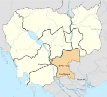 The Eastern Zone of Cambodia borders Vietnam and it was also the region where Pol Pot and his cadres started their guerrilla struggle. After the Fall of Phnom Penh, the Eastern Region was run by cadres who were more closely connected with Vietnam rather than with the core Party Center. Pol Pot suspected the loyalty of the leaders of the eastern branches and sought to purge his ranks of elements which he considered too moderate.[1] Persecutions and routine "evacuations" of people to the West escalated into an invasion by the Party Center's army of the Eastern Zone of Cambodia in 1978.