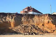 - ↑ Barnett S (2020) Demolition of landmark clifftop home gets underway after ‘critical’ coastal erosion, East Anglian Daily Times, 2020-01-20. Retrieved 2021-03-15.