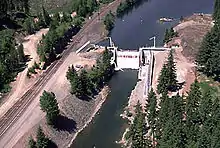 The Easton Diversion Dam is a diversion dam on the Yakima River In western Kittitas County near Easton, Washington. The dam is 66 feet (20 m) high, and 248 feet (76 m) long along the crest.[4]