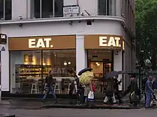 Eat (styled as EAT.) was[2] a chain of sandwich shops that was founded in 1996 by Niall and Faith MacArthur and later owned by Pret a Manger. It had 95 branches in the United Kingdom, 75 of which were in London. It announced the closure of its UK stores in March 2020.