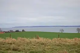 Eckernförde Bay (German: Eckernförder Bucht; Danish: Egernførde Fjord or Egernfjord) is a firth and a branch of the Bay of Kiel between the Danish Wahld peninsula in the south and the Schwansen peninsula in the north in the Baltic Sea off the lands of Schleswig-Holstein, Germany. The bay extends around 17 km (11 mi) deep into the land and is 10 km (6.2 mi) wide at its entrance where Booknis-Eck (municipality of Waabs) and Danish-Nienhof (municipality of Schwedeneck) mark the endpoints. The bay is up to 28 m (92 ft) deep. The border to the Kiel Fjord lies at the Bülk Lighthouse. The once forested Danish Wahld peninsula between Kiel Fjord and Eckernförde Bay constituted the borderland between the Saxons and the Danes until the Middle Ages. At the inner end of the bay lies the town of Eckernförde.[1]