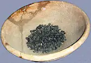 Grains were used for baking bread and brewing beer, and sesame was processed for vegetable oil. Analysis of bread found near Teishebaini suggests its baking method was similar to that still in use in some Caucasus villages.[5] Grains were ground manually or with mills, and the finds in eastern Turkey suggest that Urartu also used water mills.[3] The most common grains were from the genus Panicum, whereas wheat, barley and Hordeum grains were rare and were grown for the king, barter trade and breweries.[3]