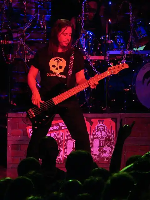 Jackson endorsed Kramer basses during the mid-1980s, until Kramer bought out Spector. The NS-2s were his primary bass guitars throughout the late 1980s and into the 1990s, and were among others used on Operation: Livecrime, until his black Spector was stolen in the mid-'90s,[7] after which Jackson retired his white model from touring, and switched to using Spector's Euro 5LX and ReBop bass guitars. Jackson briefly endorsed Fernandes basses from 1994 to 1996, during Queensrÿche's Promised Land tour,[8] before endorsing Bellevue-based master luthier Michael Lull, who had done all of the repair and upkeep work on Queensrÿche's guitars. He also used a rackmount Line 6 Bass Pod Pro at some point as well in the late 90's and early 2000's.