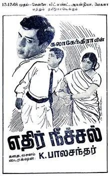 Edhir Neechal (transl.Swimming against the current)[1] is a 1968 Indian Tamil-language comedy drama film written and directed by K. Balachander. The film has an ensemble cast including Nagesh, Muthuraman, Sundarrajan, Srikanth, M. R. R. Vasu, Sowcar Janaki and Jayanthi. It is based on Balachander's play of the same name, itself inspired by Sombhu Mitra's play Kanchanranga. The film was released on 12 December 1968, and became a commercial success, with Balachander winning the Tamil Nadu State Film Award for Best Dialogue Writer. It was remade in Telugu as Sambarala Rambabu (1970) and in Hindi as Lakhon Me Ek (1971).