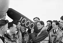 Charles, commanding No. 611 Squadron, in a publicity photograph taken to celebrate Biggin Hill sector's 1,000th aerial victory following a sortie over Normandy on 15 May 1943