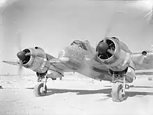 Coate was soon transferred to No. 227 Squadron.[5] This was another unit equipped with the Beaufighter, and was based at Luqa on Malta, operating in an anti-shipping role.[6] Again Coate's stay was brief and in mid-1942 he was sent to No. 272 Squadron, another Coastal Command squadron operating Beaufighters in the Middle East.[5] His new unit carried out convoy patrols, escort duties, and ground-attack missions targeting the German and Italian airfields in North Africa.[7] He achieved his first aerial victory on 30 September, when he destroyed a Heinkel He 111 medium bomber over the Sollum-Barrani road in northeast Egypt.[5]