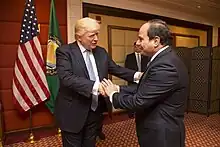 President Donald Trump greets the President of Egypt, Abd El-Fattah El-Sisi, May 2017