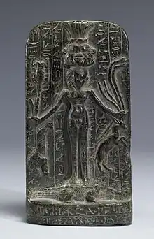Prayer and private offerings are generally called "personal piety": acts that reflect a close relationship between an individual and a god. Evidence of personal piety is scant before the New Kingdom. Votive offerings and personal names, many of which are theophoric, suggest that commoners felt some connection between themselves and their gods, but firm evidence of devotion to deities became visible only in the New Kingdom, reaching a peak late in that era.[228] Scholars disagree about the meaning of this change—whether direct interaction with the gods was a new development or an outgrowth of older traditions.[229] Egyptians now expressed their devotion through a new variety of activities in and around temples.[230] They recorded their prayers and their thanks for divine help on stelae. They gave offerings of figurines that represented the gods they were praying to, or that symbolized the result they desired; thus, a relief image of Hathor and a statuette of a woman could both represent a prayer for fertility. Occasionally, a person took a particular god as a patron, dedicating his or her property or labor to the god's cult. These practices continued into the latest periods of Egyptian history.[231] These later eras saw more religious innovations, including the practice of giving animal mummies as offerings to deities depicted in animal form, such as the cat mummies given to the feline goddess Bastet.[232] Some of the major deities from myth and official religion were rarely invoked in popular worship, but many of the great state gods were important in popular tradition.[33]