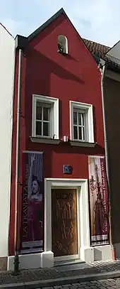 Built in 1728, the 2 metre wide house was sold between young couples to circumvent local laws prohibiting marriage between poor people who did not own their own home.[1]