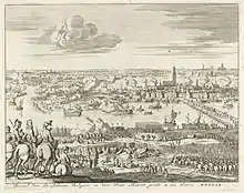 Groenlo relieved by Spinola, November 1606. Maurice's army (right) sounds the retreat.
