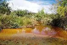 El Pandeño hotspring, officially known as "San José de Pandos", is home to the endemic Julimes pupfish (Cyprinodon julimes) considered to be one of the freshwater teleosts that lives at the highest temperatures. This spring is about 700 m2 (7,500 sq ft) in size and located in the Rio Conchos Basin, Chihuahua, Mexico. It is among several springs impacted by increasing pumping that depletes the local groundwater supply. The spring and its aquatic wildlife are under the custody of local NGO Amigos del Pandeño, A.C.[1]