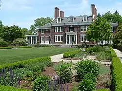 In 1902, Dr. Arthur Tracey Cabot (b. 1852 in Boston to Dr. Samuel Cabot III and Hannah Lowell Jackson Cabot)[1] hired architect Charles A. Platt to design a country house with landscaping and outlying farm buildings. Its formal grounds include lawns, a walled garden, and a parterre. Dr. Cabot had seven siblings,[2] but no children.[3] The estate was passed on to his niece, Eleanor Cabot (daughter of his brother, Godfrey Lowell Cabot), who married Major Ralph Bradley in 1919.[4]