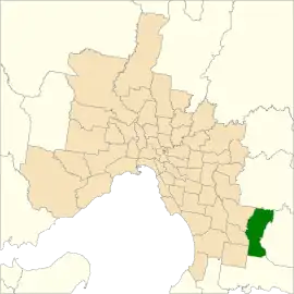 The original electoral district of Berwick was abolished in 2002. In the 2021 redistribution, it was revived as a new electoral district to be contested at the 2022 Victorian state election.[1] It covers areas from the abolished district of Gembrook, and covers outer Eastern suburbs of Melbourne. It includes the suburbs of Beaconsfield, Berwick, Clyde North and small towns around Cardinia Creek south of Emerald.[2]