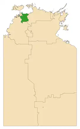 Goyder is an electoral division of the Legislative Assembly in Australia's Northern Territory. It was first created in 1990, and is named after George Goyder, the South Australian surveyor responsible for carrying out the first freehold surveys in the area. Goyder encompasses large rural areas south of Darwin, covering 9,770 km², and taking in the towns of Bees Creek, Cox Peninsula, Virginia, Marlows Lagoon and parts of Berry Springs and Humpty Doo. When first created, it was even larger extending south to Pine Creek and east to Jabiru and the whole of Kakadu National Park. There were 5,583 people enrolled in the electorate as of August 2020.