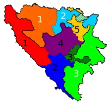 A map of the Parliamentary constituencies of Bosnia and Herzegovina[1]