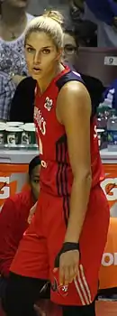 Elena Delle Donne (born September 5, 1989) is an American professional basketball player for the Washington Mystics of the Women's National Basketball Association (WNBA).[1] Delle Donne played college basketball for the Delaware Blue Hens from 2009 to 2013.[2] She was drafted by the Chicago Sky with the second overall pick of the 2013 WNBA draft,[3] and led the Sky to the 2014 WNBA Finals, where they were defeated by the Phoenix Mercury.[4] Delle Donne was traded to the Washington Mystics in 2017[5] and led them to their first WNBA championship in 2019.