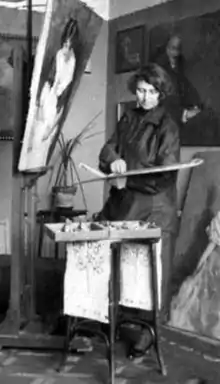 When Konsulova was ten years old, her family moved to Sofia, where her father became the director of a distillery.[1] Encouraged by her father, in 1897, Konsulova entered the State School of Painting, studying with Jaroslav Věšín. There were only two girls in her classes and they were often ridiculed. While the men studied anatomy on live models, the women are allowed only to sketch muscles and bones from modestly draped, plaster sculptures. Konsulova rebelled against the discriminatory teaching methods and went to the headmaster, Ivan Murvichka to complain. She insisted that women be allowed to draw from nature, just as the men were. In a time when women artists were not seen as capable, or allowed to exhibit their art with men, she convinced Murvichka to allow women the same training as men. She became the first woman at the school to both sketch nude models and paint nude portraits.[2][4] During her schooling, she was introduced to a young lieutenant Boris Vazov (bg), younger brother of Ivan Vazov, who she would have a secret relationship with for eight years. Her parents disapproved of his lack of status and they had to exchange letters through a classmate.[2][5] Konsulova graduated in 1902 and though she wanted to continue her studies abroad, she was unable to do so due to her father's death and the need for her to provide financial support for the family.[2]