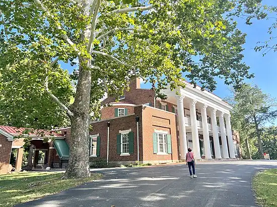 The 207 acres of land belonged to the Ewing family since the 1800s.[2] In the 1910s, Brentwood Hall was built for Rogers Caldwell, a prominent businessman across the Southern United States.[2] When he was convicted of fraud, his estate was seized by the state of Tennessee and turned into this center.[3] It was named after Buford Ellington, who served as Governor of Tennessee from 1959 to 1963 and again from 1967 to 1971.[2]