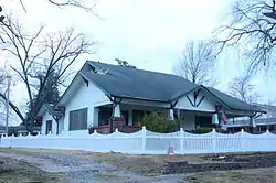 The Elliott House is a historic house at 309 Pine Street in Fordyce, Arkansas. The 1+12-story wood-frame house was built in 1925, and is a well-executed example of Craftsman style. It is a rectangular structure with three overlapping gabled roof sections with different pitches. The eaves are wide, and decorated with knee braces and exposed purlins. A fourth gable extends over the main entry, which has a twelve-light door with flanking sidelight windows.[2]