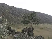 The land is punctuated by pyroclastic cones of Holocene age. The highest peak has an elevation of 2126 metres. It is located between Lake Elmenteita and Ol Doinyo Eburru volcano, on the southern boundary of the Soysambu Conservancy. Some of the prominent peaks include "Horseshoe Crater" and "Scout Hat Hill".[1] There are some lava tubes which show evidence of prehistoric occupation as grinding plates and stone bowls have been recovered by the local people in rudimentary excavation. These caves have been occupied by some of the refugees from the 2008 post-election violence in Kenya.