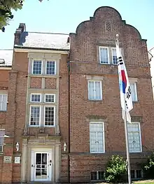 Due to the rather small size of its main building, the embassy has an annex nearby in Arlington County, Virginia.[3] It also occupies two additional buildings close to its chancery to house its Consular Section and a Korean Cultural Center.[2] The ambassador's residence is located in the nearby Spring Valley neighborhood, close to American University.[4]