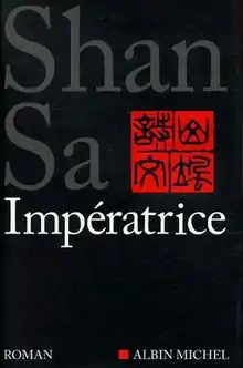Empress (French: Impératrice) is a French biographical novel written by Shan Sa, a French author who was born in Beijing. It focuses on Empress Wu Zetian, from her upbringing to her rise to power from concubine to the first Empress of China. The novel is told from her point of view (first person POV), and discusses her motivations in her court and love life.