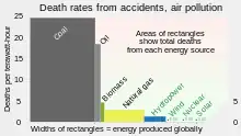 The deployment of renewable energy can also include co-benefits of climate change mitigation: positive socio-economic effects on employment, industrial development, health and energy access. Depending on the country and the deployment scenario, replacing coal power plants can more than double the number of jobs per average MW capacity.[47] A study showed that converting from coal jobs to solar jobs in the U.S. would increase pay for workers by about 7%.[48] The costs for retraining workers for the renewable energy industry was found to be trivial for both coal[48] in the U.S. and oil sands in Canada.[49] The latter of which would only demand 2–6% of federal, provincial, and territorial oil and gas subsidies for a single year to be reallocated to provide oil and gas workers with a new career of approximately equivalent pay.[49][50] In non-electrified rural areas, the deployment of solar mini-grids can significantly improve electricity access.[51] Employment opportunities by the green transition are associated with the use of renewable energy sources or building activity for infrastructure improvements and renovations.[52][53] Additionally, the replacement of coal-based energy with renewables can lower the number of premature deaths caused by air pollution and reduce health costs.[54][55][56] One study estimated that converting from coal to solar photovoltaics in the U.S. would decrease the number of American premature deaths by approximately 52,000.[57][58]