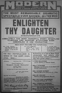 1917 advertisement for Enlighten Thy Daughter, including endorsements from religious leaders