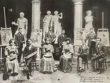 Students of the Fine Arts School of Quito. 1908. In the back row, on the left and standing Enrique Gomezjurado,
