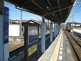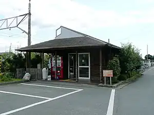 The station has a single unnumbered island platform, connected to a small, rustic wooden station building. The station building has automated ticket machines, and automated turnstiles which accept the NicePass smart card, as well as ET Card, a magnetic card ticketing system. The station is unattended.