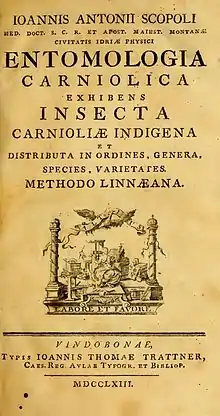 3. 1 2 Giovanni Antonio Scopoli (1763). Entomologica Carniolica. Vienna: Johann Thomas von Trattner.