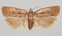 The wingspan is 18–23 mm. The moth flies from August to November. .