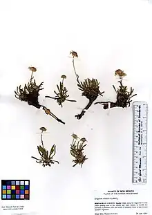 Erigeron vetensis is a North American species of flowering plant in the family Asteraceae known by the common name early blue-top fleabane.[2] It is native to the western United States (primarily in the Rocky Mountains of Wyoming, Colorado, and New Mexico but with an isolated population in Nebraska).[3]