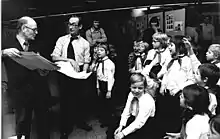 Schoolchildren from the Ernst Thälmann Pioneer Organisation visit an exhibition