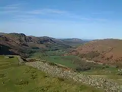 Eskdale is a glacial valley and civil parish in the western Lake District National Park in Cumbria, England. It forms part of the Borough of Copeland, and in 2001 had a population of 264,[2] increasing to 304 at the 2011 Census.[1] One of the Lake District's most popular tourist attractions, the Ravenglass and Eskdale Railway, runs through the valley, though along with other western valleys of the Lake District, Eskdale is notably quieter during the high summer season than the more accessible eastern areas.