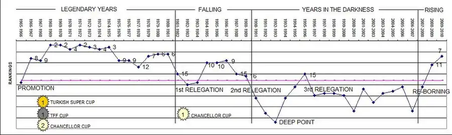 - Süper Lig: 1966–82, 1984–89, 1995–96, 2008–2016