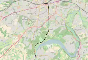 The Essen-Werden to Essen railway is an electrified railway line in the German state of North Rhine-Westphalia. It is a main line railway with two tracks, except for the Stadtwald Tunnel, running through the metropolitan area of Essen and connecting Essen-Werden station with Essen Hauptbahnhof.