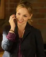 Esther is introduced in press materials as being "an innocent in a world of assassins, liars and zealots".[12] Havins describes Drummond as "an optimist and the glass is half full person".[14] A promotional video released by Starz provided background information on Esther including her college education—the character introduces herself by stating that she has a BA in Linguistics and a Masters in Cognitive science.[15] Series four writer Jane Espenson enjoyed writing for Esther as she felt the character to be most similar to herself. She notes that when devising Esther's backstory the writer's "ended up just putting my college experience down."[16] Esther's introduction invites parallels that of lead female character Gwen Cooper (Eve Myles) in the series' 2006 premiere episode "Everything Changes"; she represents an audience surrogate for new American viewers.[17] Havins refers to Esther as the "tour guide" for new viewers coming to Torchwood for the first time, one who is "digging deeper and deeper into the rabbit hole". Despite similarities to their introduction, Havins comments that Esther as a character has a less action-orientated role than Gwen, being more the "techie" of the team who uses her intellect and technology as her weapons. The actress feels that Esther's desk-bound analyst position is "her safe little world".[18] Head writer and executive producer Russell T Davies described Esther as "a very healing force" in helping the other more outspoken characters gel together as a team because she is "much more able to empathise with people."[19] The character's sister, Sarah Drummond (Candace Brown), recurs throughout Miracle Day, Havins feels that her presence helps "humanise the situation" as including family members helps the audience "understand why people react a certain way."[17] Espenson notes that the first scene between Esther and Sarah was discussed at length at the writer's room—the writers chose to make Esther's choice whether or not to refer her ill sister to social services "as difficult as possible" to heighten the pain felt by the character.[20]
