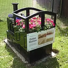 Nothing now remains of Eston station and its site is now occupied by modern housing. The trackbed of the spur from the Normanby Branch has been made into a footpath and can be walked from the site of the old level crossing at Flatts Lane to Station Road in Eston. The Normanby Branch itself is also now a footpath, the South Bank Walkway, which links Flatts Lane Country Park to South Bank.[7] The station is commemorated by a small locomotive-shaped planter with an information board, installed in 2010 near the old level crossing by the Eston Residents Association.