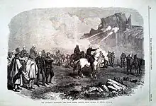 The British sent a mission under Assyrian-born British subject Hormuzd Rassam, who bore a letter from the Queen in response to Tewodros now three years old letter requesting aid. In response insult resulting from British failure to do exactly what they told, Tewodros added Rassam mission into other European prisoners, breaching diplomatic immunity that led the British launched 1868 Expedition to Abyssinia under Robert Napier. He travelled from India with 13,000 troops and 26,000 camp followers, involving specialist and engineers. When Tewodros reputation immediately degraded by internal rebellion and his harsh methods, the British troop reached Magdala on 10 April and Emperor Tewodros's army decisively defeated. Awaring this, Tewodros released all Europeans and ordered 300 Ethiopians to flung over the cliff. The emperor committed suicide in Easter Monday, 13 April as the British troops stormed citadel of Magdala.