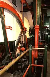 The site was given an official heritage listing in the 1970s (initially as an ancient monument).[2] After a period of restoration, started in 1978, the museum was opened by Fred Dibnah in 1991.[3] Inside the restored site visitors see displays on the history of the mill and its site, and its machinery. There is a working steam engine called "Princess" dating from the 1820s, which was second-hand at the time the mill was built.[4] There is a working historic blacksmith's forge flanking the museum's modern entrance building. Much further restoration work was completed on the wider landscape setting of the mill in the mid-1980s, as part of the preparations for the national Stoke-on-Trent Garden Festival.