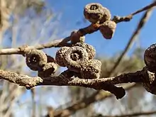 3. 1 2 Nicolle, Dean; French, Malcolm E. (2012). "A revision of Eucalyptus ser. Falcatae (Myrtaceae) from south-western Australia, including the description of new taxa and comments on the probable origin of E. balanites, E. balanopelex, and E. phylacis" (PDF). Nuytsia. 22 (6): 448–450. Retrieved 16 February 2019.
